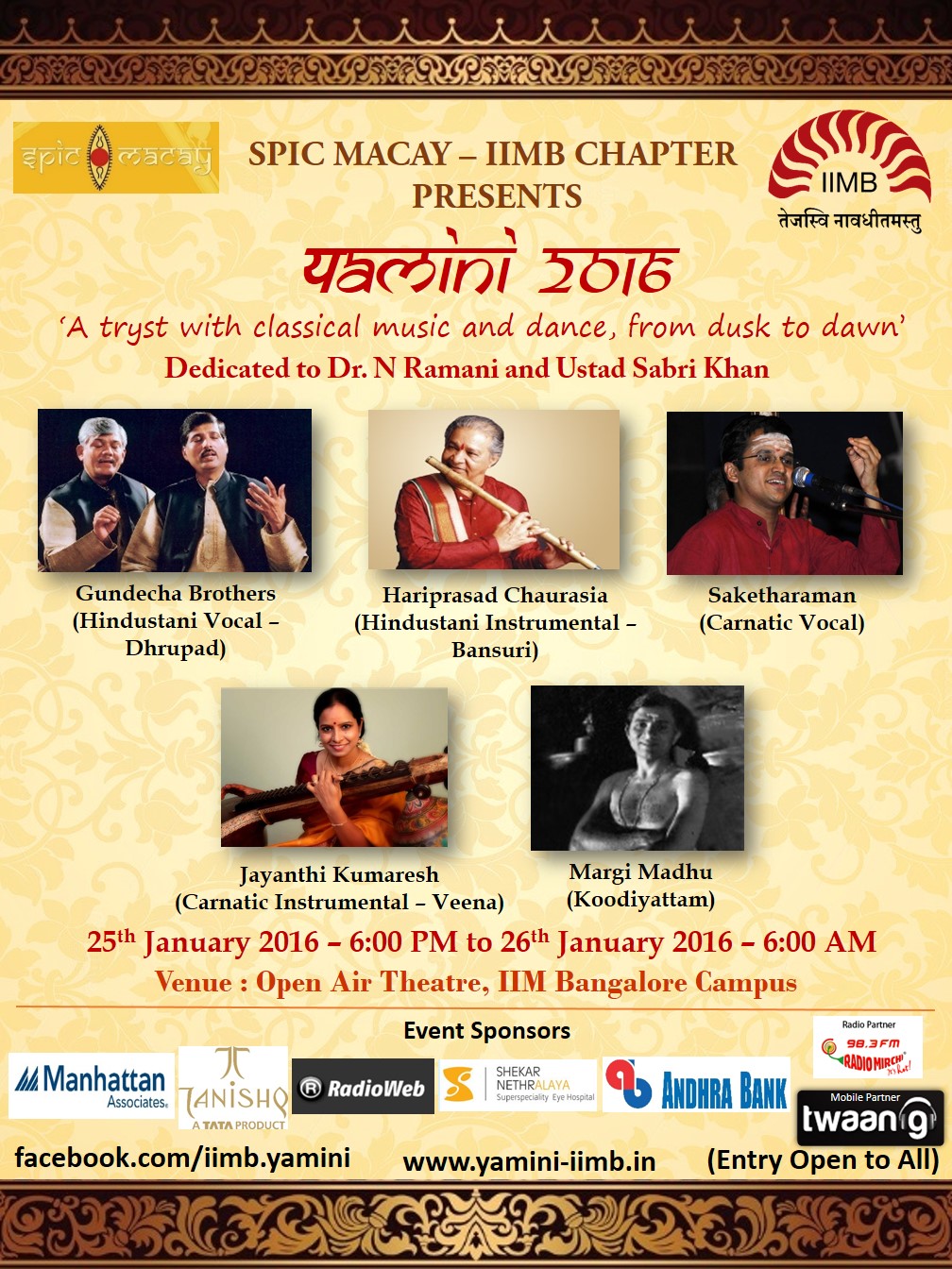 Yamini -2016 SPICMACAY – IIMB Chapter Monday, January 25, 2016